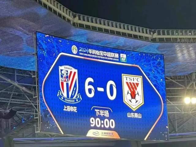 不过,送给国安队史最大比分输球纪录的山东泰山,自己队史最大比分输球也是一模一样的0-6,不过是拜另外一个老冤家上海申花所赐。那是2024赛季中超联赛第18轮,泰山队客场挑战申花。结果开场18分钟,申花就连进3球,随后泰山中锋克雷桑两黄变一红被罚出场外,多打1人的申花又在下半场连进3球,最终6-0血洗泰山。