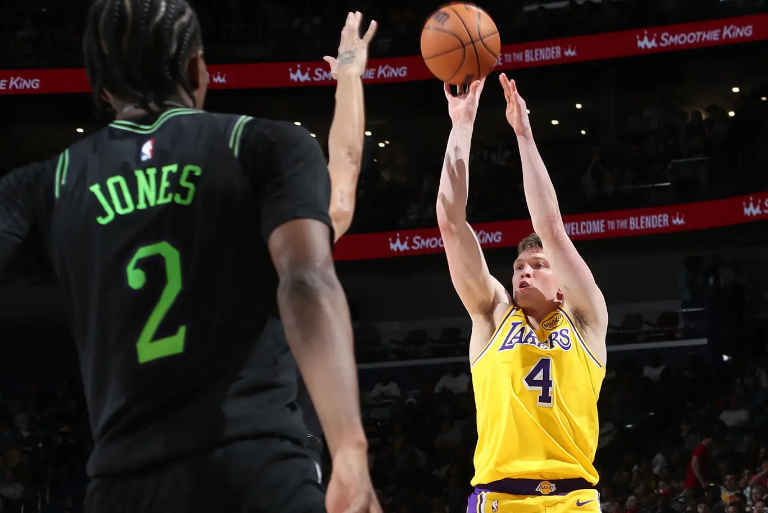 本场比赛中,湖人的替补侧翼新星道尔顿-克内克特(Dalton Knecht)非常罕见地在比赛常规阶段起到了一些作用。克内克特全场出场10分56秒,投篮5中2,三分线外4中2,得到了6分,还有2次犯规,正负值为+5。大家都知道,克内克特在其他方面的能力非常有限,没有基本的传球视野,没有出色的防守能力,在其他方面都实在是没有办法为球队提供任何的帮助和支持,但至少在本场比赛中,他还是命中了两记三分,在有限的出场时间内在进攻端为球队提供了一定的帮助和支持。克内克特在本场比赛中也算是完成了自己应该完成的任务,在场上起到了自己的作用,并且为球队的胜利做出了不小的贡献,至少他也是没有拖球队后腿了。